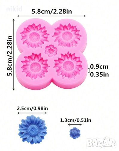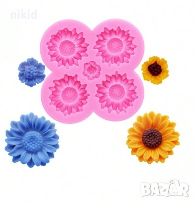 5 цветя цвете малка лайка маргаритка гербер силиконов молд форма фондан гипс шоколад декор → Обява 44105292