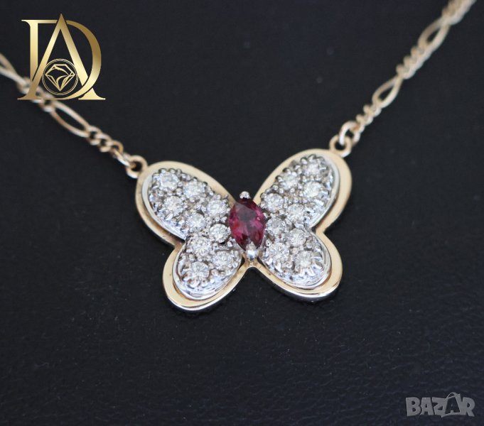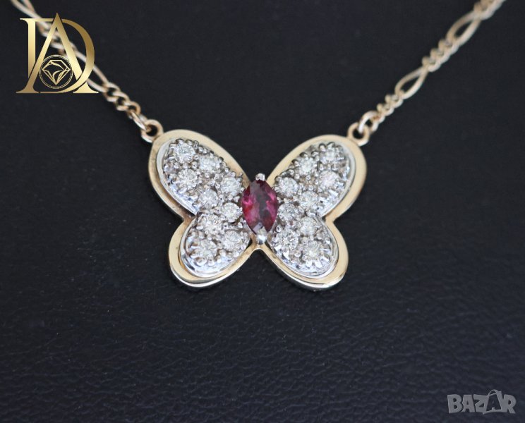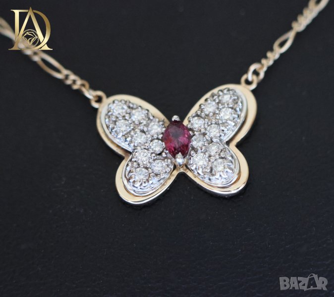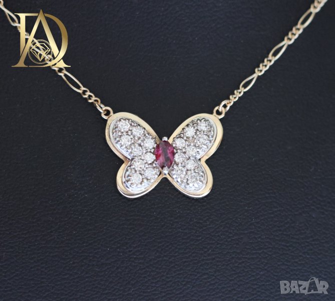 Ново Златно Колие "Пеперуда" с Естествен Рубин и Естествени Диаманти