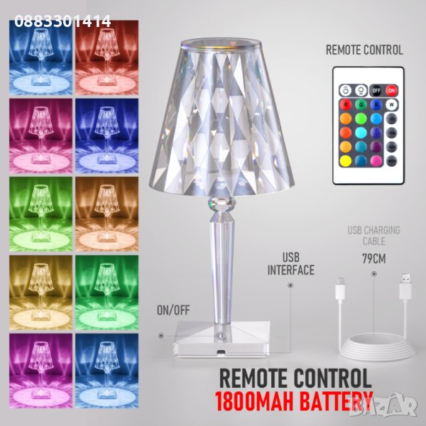 Представете си вашия дом озарен от бляскава и модерна декоративна кристална настолна лампа с USB кабел и дистанционно управление.