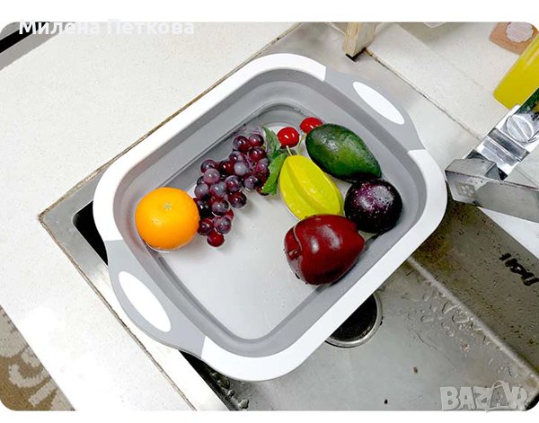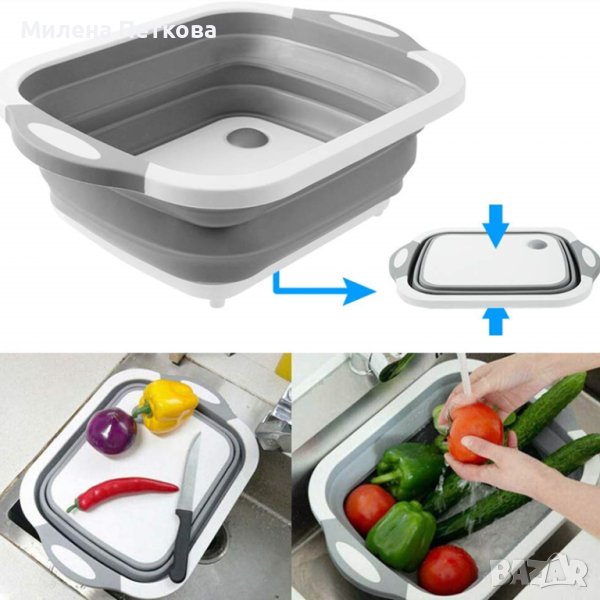 3в1 Сгъваема дъска за рязане, купа с тапа, гевгир! Домакински уред