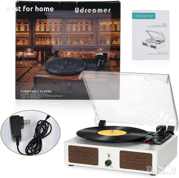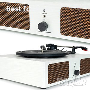 Udreamer грамофон с Bluetooth, всичко в едно 3-скоростни ретро аудио грамофони, бял