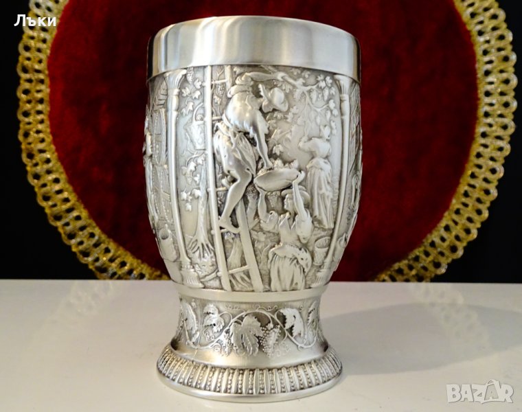 изработка от 95% калай и 5% сребро,маркиран с инициалите на световно известната
