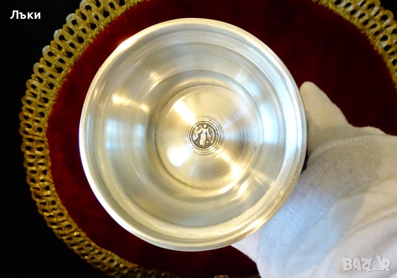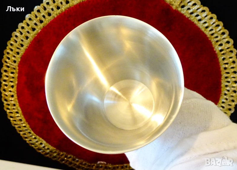изработка със сребърен блясък. Височина 14 см.,диаметър 8 см.,тегло 290 гр.Вместимост 200 мл.