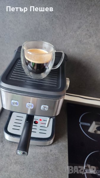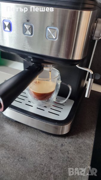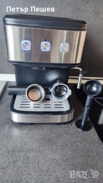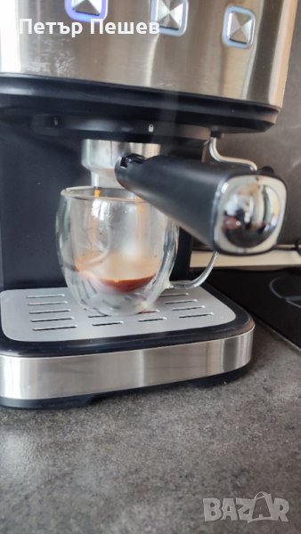 Кафемашината е основно почистена, направена профилактика и е готова за употреба. Приготвя страхотно еспресо кафе с каймак, благодарение на крема цедката и 15 бара налягане на помпата. Цедката е подходяща както за едно кафе, така и за две. Мерителна лъжица в комплекта.