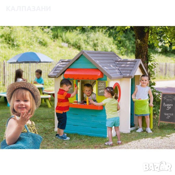 Вътрешността на къщата предлага много опции за игра: хладилник, фурна, газова скара с движещи се пламъци, мивка с кран, два рафта и касов апарат с калкулатор и четец на кредитни карти. Има и сладки и солени храни за игра, кетчуп, сосове, дъска и забавен тиган за палачинки, за да обърнете палачинките с лекота. Шейкъри за сол и черен пипер с „звук на щракане“, прибори за хранене, съдове, както и пари за игра и кредитни карти закръгляват силните характеристики на играта.
