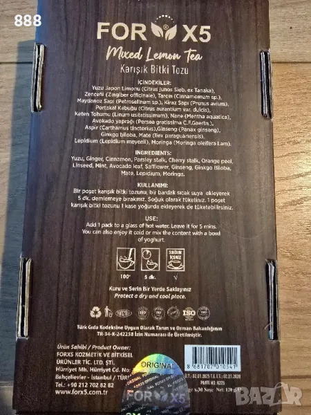 състав - юзу, джинджифил, канела, магданоз, черешово стръкче, портокалова кора, ленено семе, мента, лист от авокадо, шафранка, женшен, гинко билоба, мате, горуха, моринга