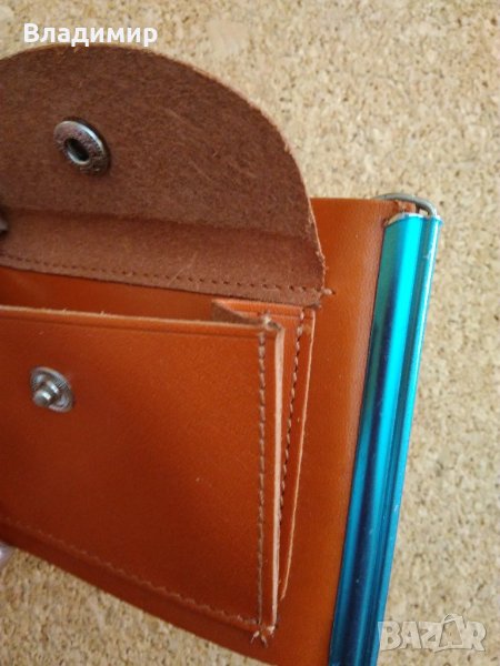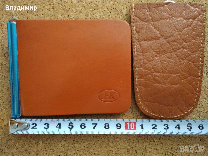 Продавам от естествена кожа ключодържател и портмоне с отделение за монети и щипка за банкноти.