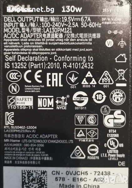 Зарядно (захранващ адаптер) за лаптопи DELL - 19,5V-6,7A-130W-LA130PM121