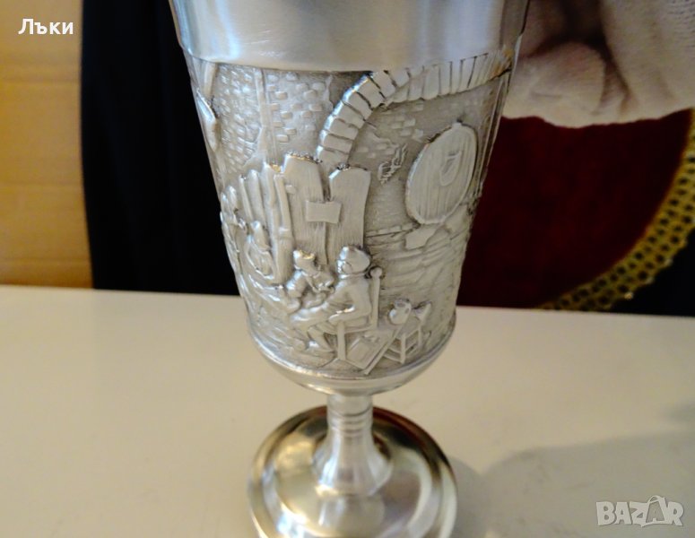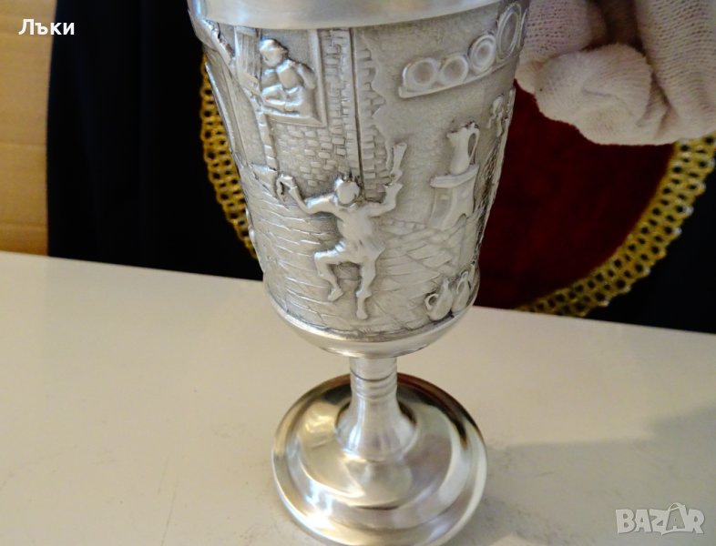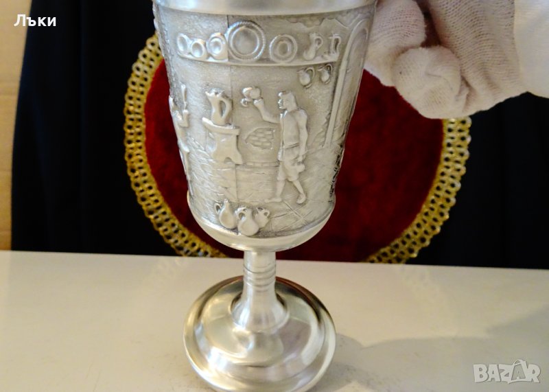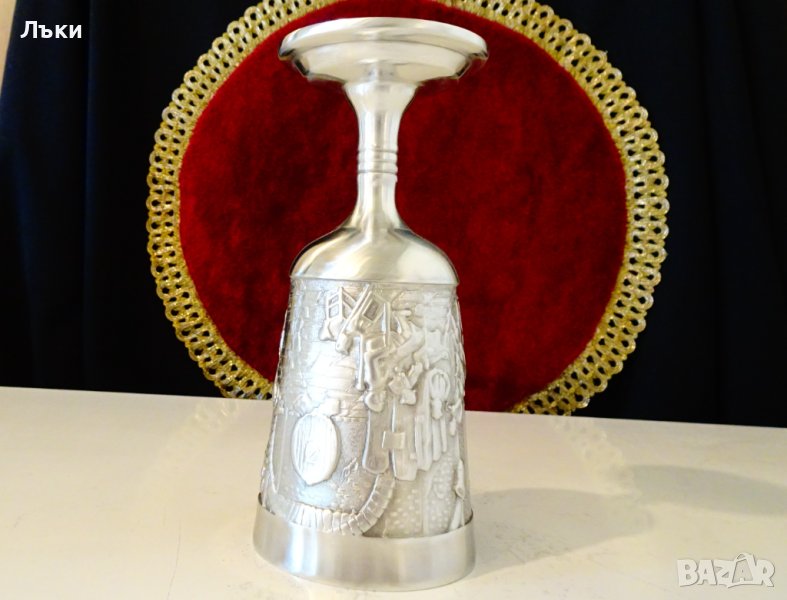 Западно Германска калаена чаша за вино с високо столче,майсторска