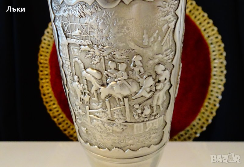 от 95% калай и 5% сребро,маркиран с инициалите на световно известната марка SkS.Посветен на селския
