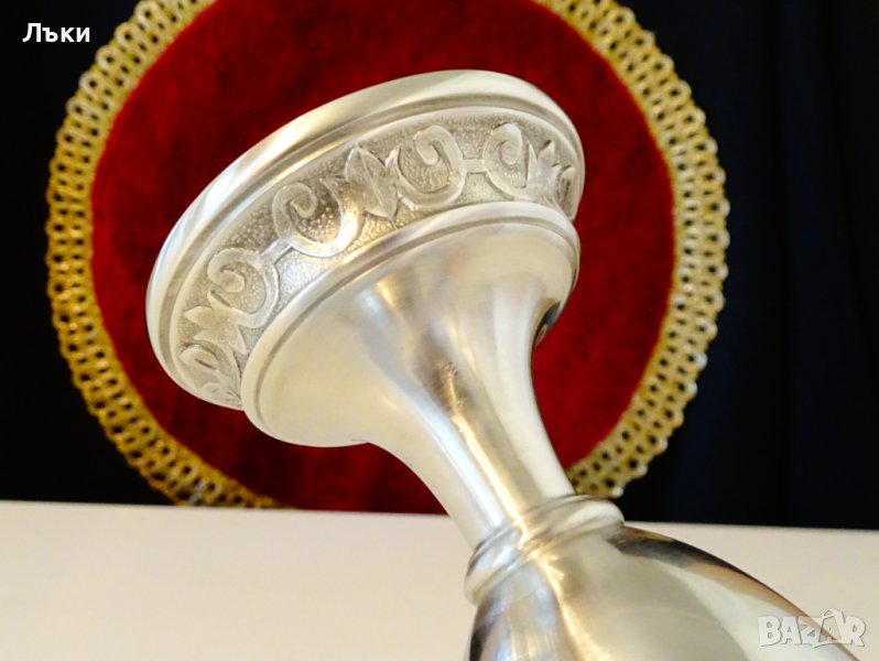 качествена изработка със сребърен блясък.Височина 17 см.,диаметър 6.5 см.,тегло 250 гр.Вместимост 200 мл.