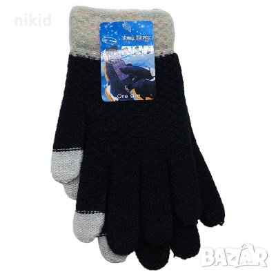 зимни плетени черни Ръкавици с тъчскрийн функция универсални → Обява 44117836