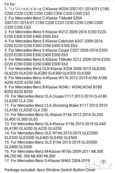 Никел добавки за копчета на Ел стъкла на мерцедес .В луксозна метална опаковка.На една от снимките е описано за кои модели стават.