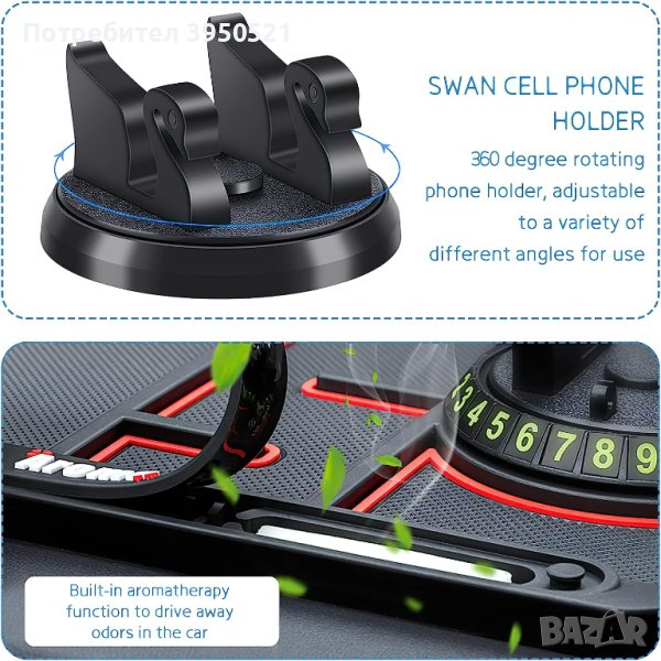 - Държачът за мобилен телефон върху противоплъзгащата се подложка може да се върти на 360 градуса, независимо дали става въпрос за хоризонтален или вертикален екран, той може да се регулира по желание, за да отговаря на различните ви виждания.