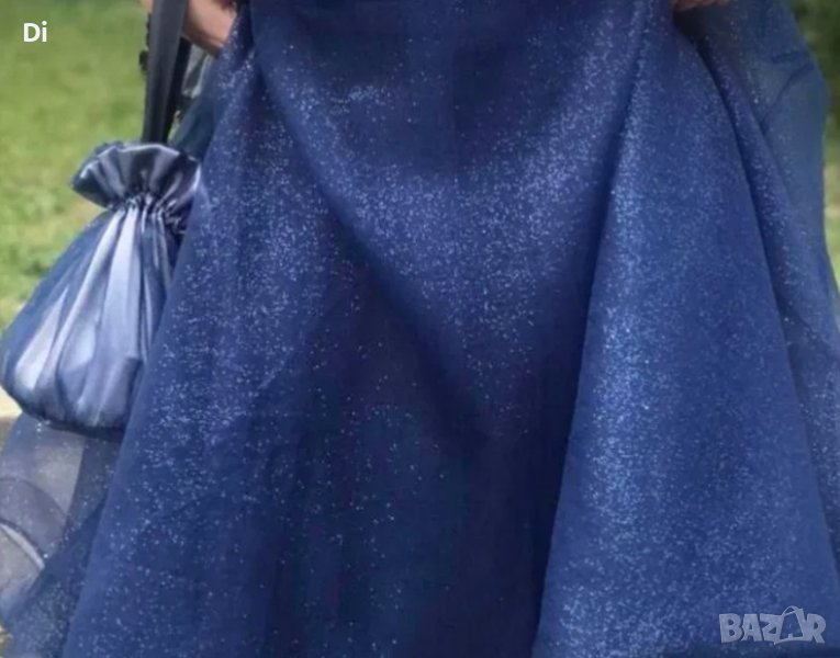 Официална рокля тип принцеса с паднало рамо. Цвят тъмно син, кристален тюл.