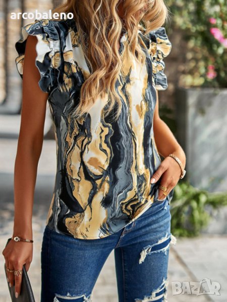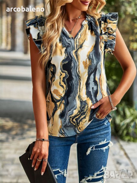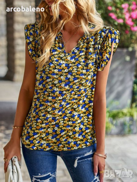 Дамско горнище с V-образно деколте и флорален темперамент, 4цвята