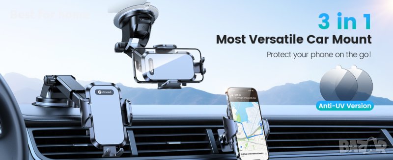 3 в 1 Универсална стойка за кола: Стойка за мобилен телефон за кола VICSEED, изработена от PTFE материал за авиолинии, може да се монтира универсално към таблото, предното стъкло или вентилационния отвор, за да отговори на вашите нужди, когато ви е удобно и изисквания. Добър избор за повечето автомобили, пикапи, SUV, камиони, таксита; добър помощник за шофьори на Uber, Lyft.