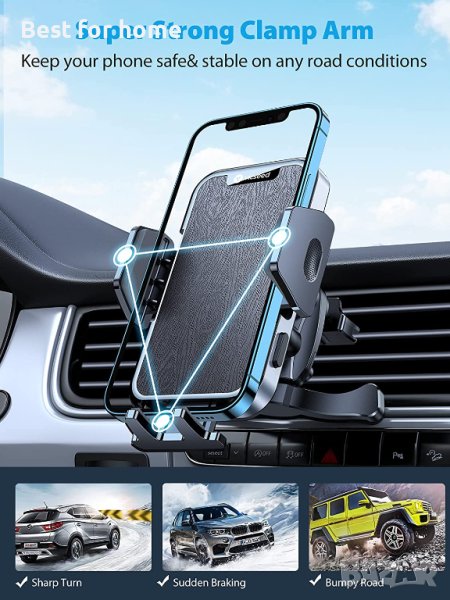 Работа с една ръка: Държачът за мобилен телефон за кола разполага и със система за освобождаване с един бутон, която ви позволява да заключите или освободите телефона си само с една ръка. Пасва добре за всички мобилни телефони между 4''-7'' в ширина и най-дебелият корпус.
