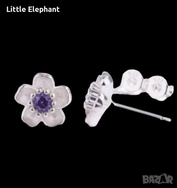 Сребърни обеци цвете с лилави кристали/нови → Обява 44123918
