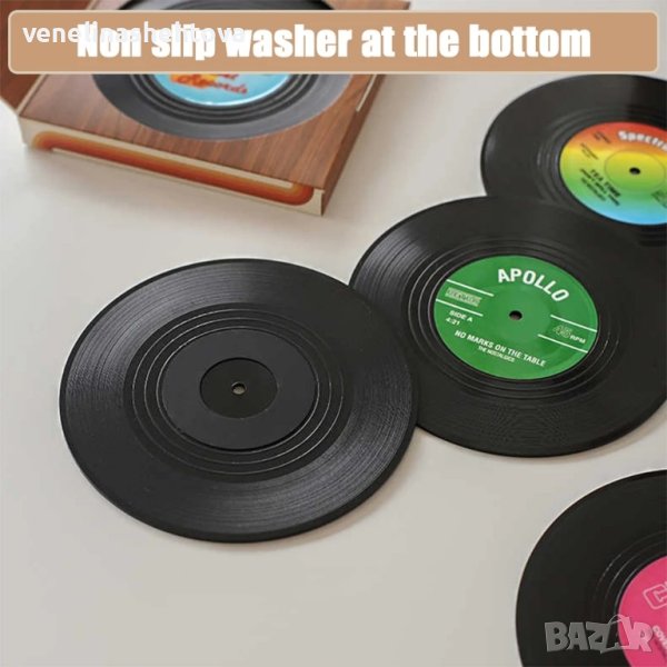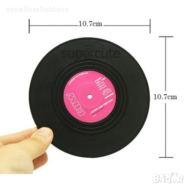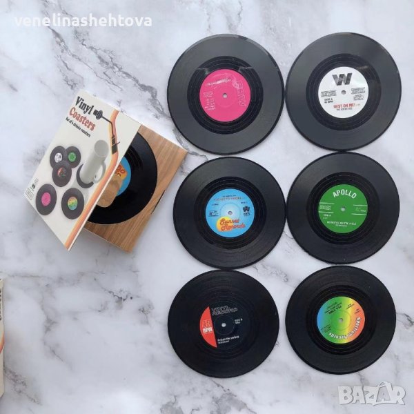 Комплект от 6 броя подложки за чаши, които изглеждат като музикални плочи.Перфектен подарък за любителите на евъргрийн парчетата.