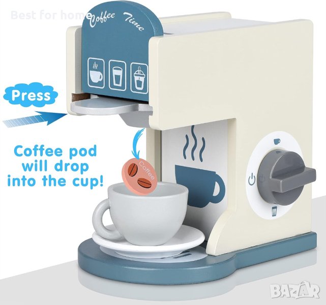 Перфектен подарък - Детската кафемашина е със сладък външен вид, реалистичен дизайн и е опакована в красива цветна кутия. Подарък за рожден ден, Коледа, Нова година. Подходящо за момчета и момичета над 3 години.