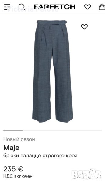 Неизползван прекрасен модерен панталон, колекция 2024, уникален френски бранд лукс качество, френски стил - изискано съчетание на класиката, бохемния шик и романтичност. Материята е тежка, вълна вискоза и еластан, крачолите - умеренно широки, свободни, падащи красиво. Талия - 38см, дължина от колана- 105см, отвътре - 83см, широчината на крачола горе - 31см, долу - 26см.