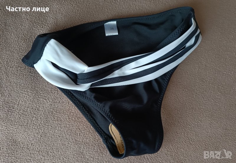 Ефектно долнище на бански. Черно с преплетени отпред ленти (бяла+черно и бяло). По етикет размер 38