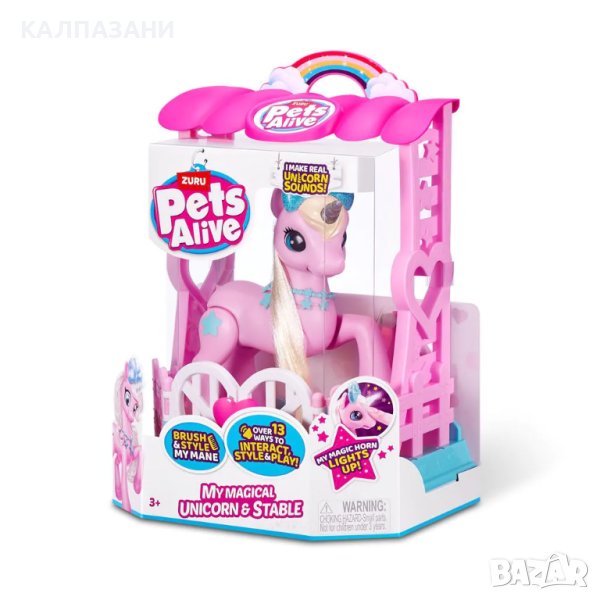 Открий магията със свой собствен еднорог - като жив е! Погрижи се за него, като разресваш гривата му и го храниш с моркови - и го слушай как хруска. Чуваш ли го? Издава истински звуци на еднорог - само го пипни по носа! Рогът му също започва да свети.