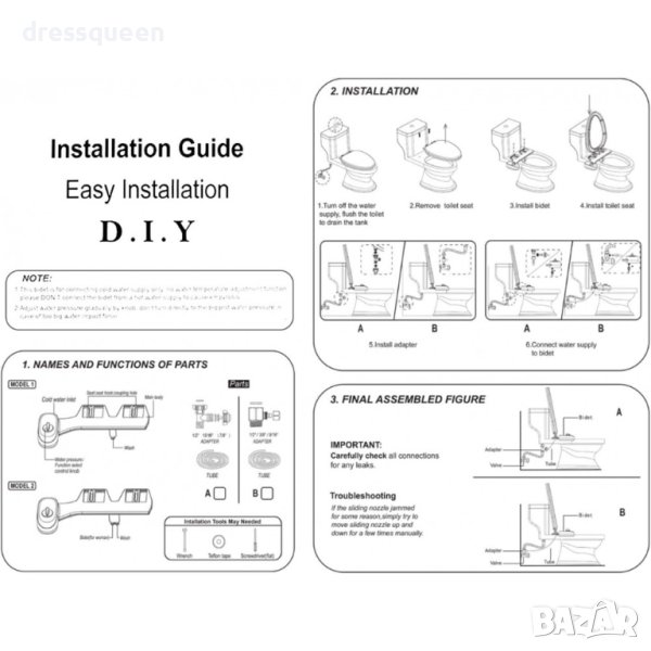За разлика от други марки, нашето биде приставка се инсталира много лесен и няма да ви отнеме повече от 5 минути, за я инсталирате на тоалетната чиния. Приставката биде се монтира между седалката за тоалетна чиния и порцелановата тоалетна.