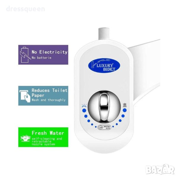 Биде приставка Luxury Bidet използва революционна техника за измиване, за да ви осигури висококачествено хигиенно почистване на дъното само с едно натискане на бутон. За допълнителен комфорт можете да регулирате силата на налягането и ъгъла, който ви пасва най-добре, което го прави подходящ за мъже, жени и деца.