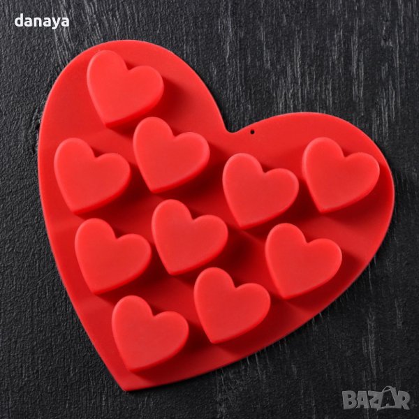 Силиконовата тавичка е с форма на сърце и е за 10 бонбона във форма на сърце.
