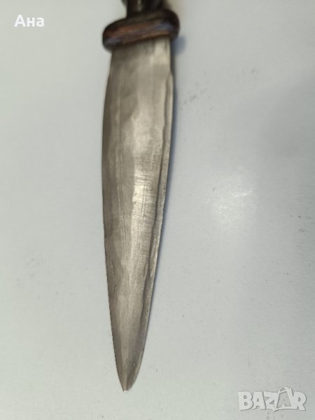 Ковано острие широко 3 см заострено и от двете страни .. С.Дръжка от естествена кожа и кания дърво и естествена кожа .