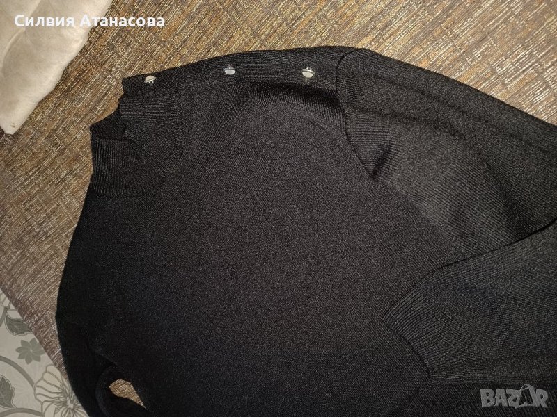 Черна плетена блуза с висока яка и копченца, размер S, нова, без никакви забележки.
