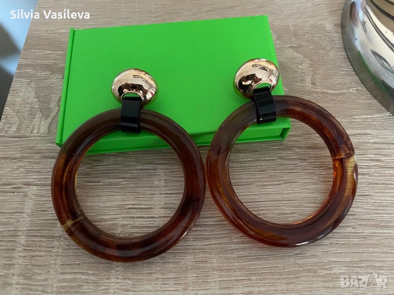 Обици халки в златисто и кафяво. Материал цинк и пластмаса.