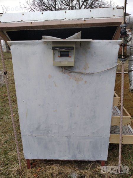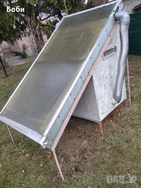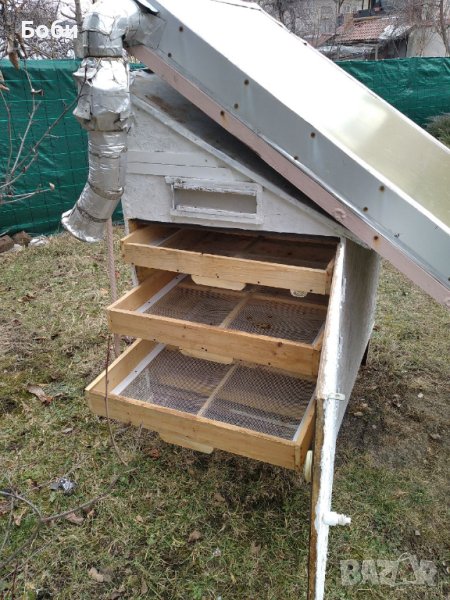 Сушилнята е ръчна изработка. Работи с вентилатор, който завихря топлия въздух през сух панел.