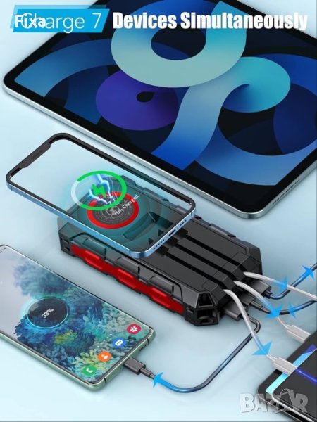 Продавам много висок клас преносима батерия със соларен панел, и с функция безжично зареждане. Има 3 вида вградени кабела: Lightning / Type-C / Micro. Мощното фенерче има 8 вградени перли за лампа, които не само могат да светят на 33 фута (10 метра), но също така имат 3 режима на светене: силна светлина - SOS - светкавица. Преносимата батерия е с 36800mAh и производителя много известна марка “Togaga” модела е HDL-531