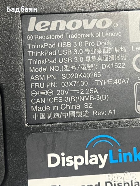 Докинг станция ThinkPad USB 3.0 Pro Dock (40A7) → Обява 44132857