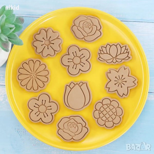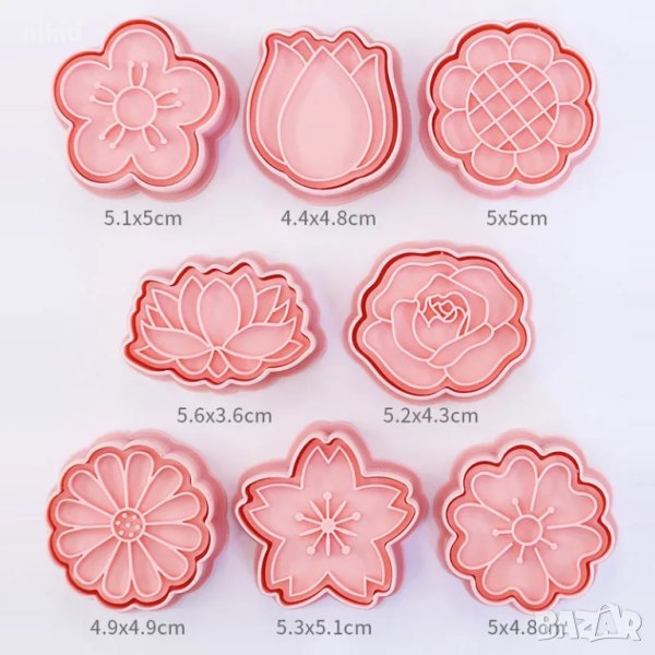 8 цветя цвете резци резец с печат печати с релеф щампа за сладки бисквитки тесто фондан → Обява 44133961