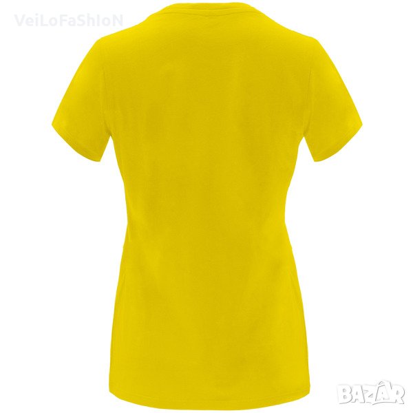 Новa дамска тениска в жълт цвят с героя Спондж боб (SpongeBob). Произведена от 100% памук с плътност на тениската 170гр./м². Тениската е с двуслойно деколте, странични шевове и подсилено двойно покритие на шията и раменете. Подходяща както за ежедневна употреба, така и за спорт или тренировка в свободното време.