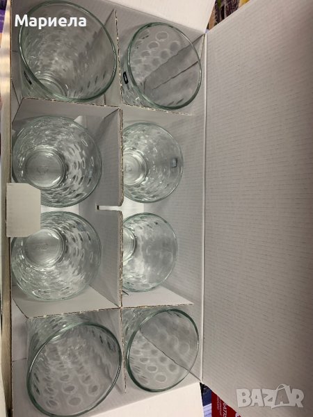 В комплекта са 8 бр. чаши - 4 високи и 4 ниски .