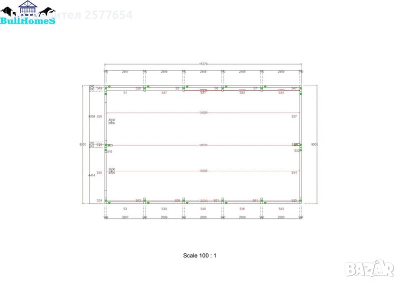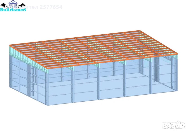 Хале 135м2- 9.00м х 15.00м х 3.50м - етап Конструкция - готови за сглобяване профили.