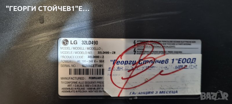 32LD490 EAX61531909[2] EAX61464001-10 T315HW04 V.8 T370HW03 VIT71884.10 → Обява 44141721