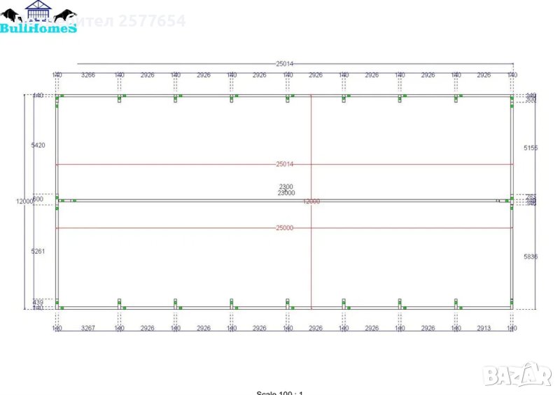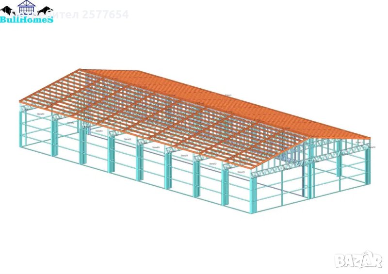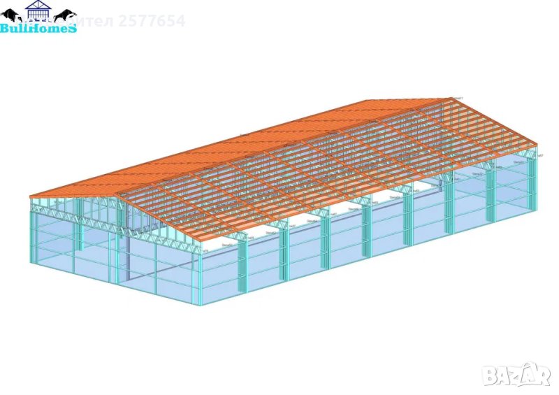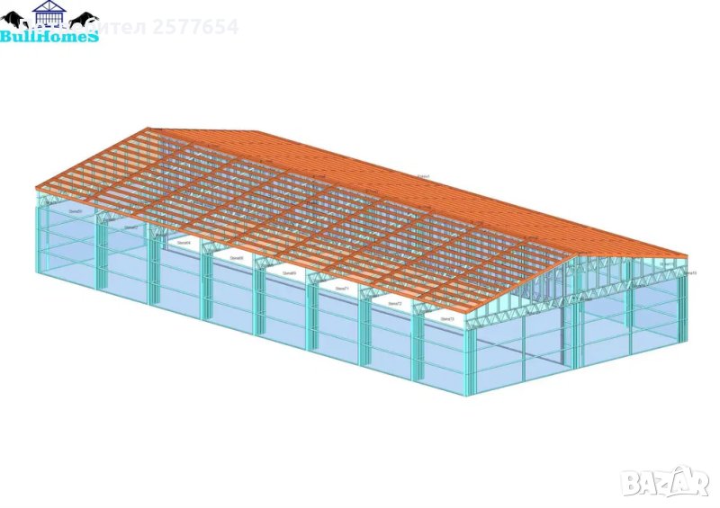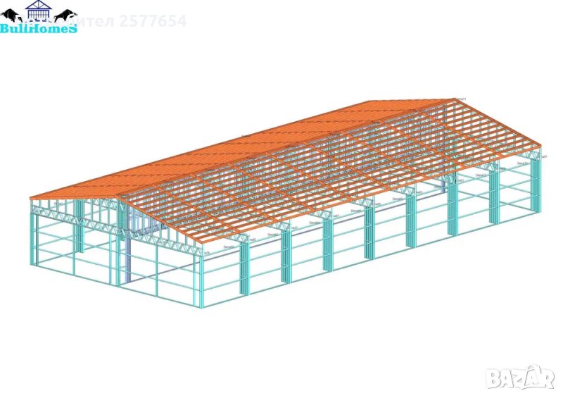 Конструкция за Хале, склад 300м2 - 12.00м х 25.00м х 2.70м- етап Конструкция - готови за сглобяване профили.