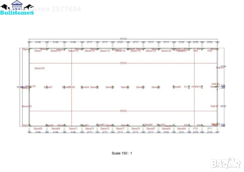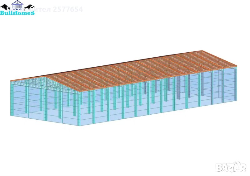 Хале 525м2 - 15.00м х 35.00м х 5.00м- етап Конструкция - готови за сглобяване профили.