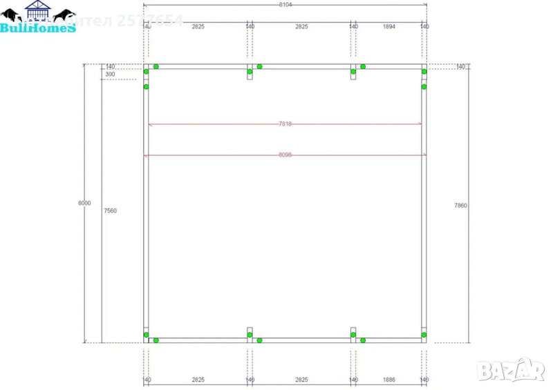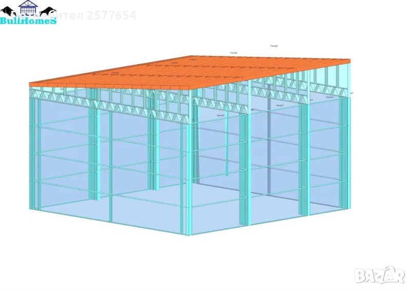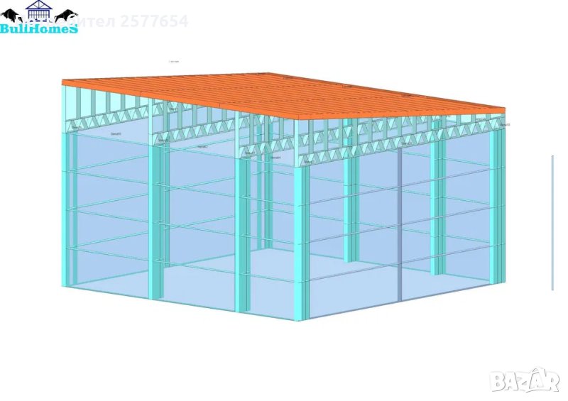 Конструкция за Хале, склад 64м2-8.00м х 8.00м х 4.00м - етап Конструкция - готови за сглобяване профили. СОБСТВЕНО