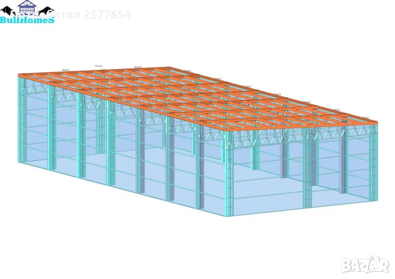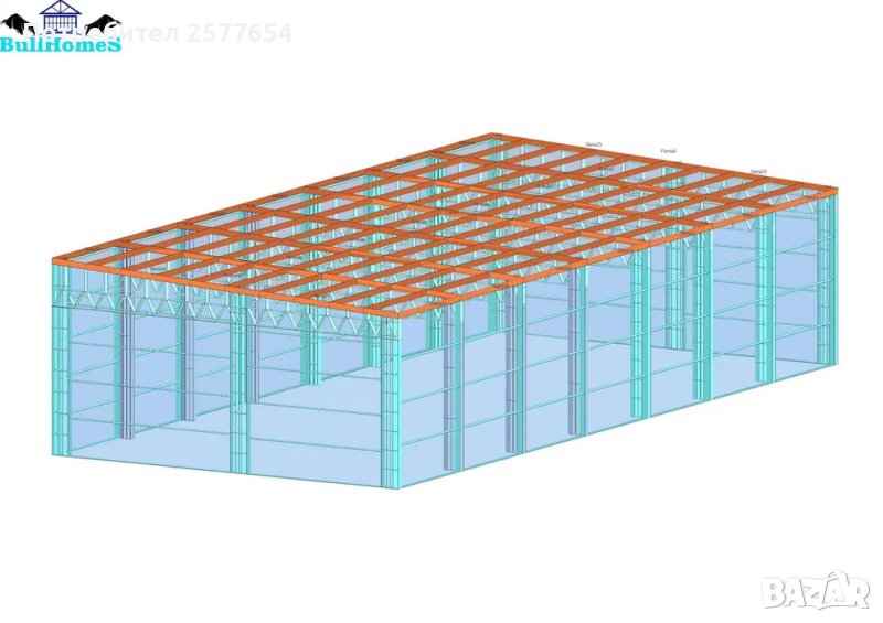 Хале 180м2- 9.00м х 20.00м х 4.50м - етап Конструкция - готови за сглобяване профили.
