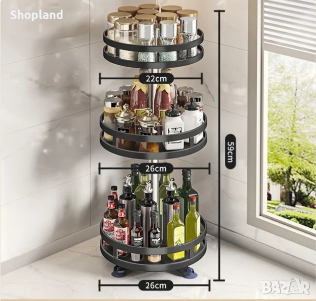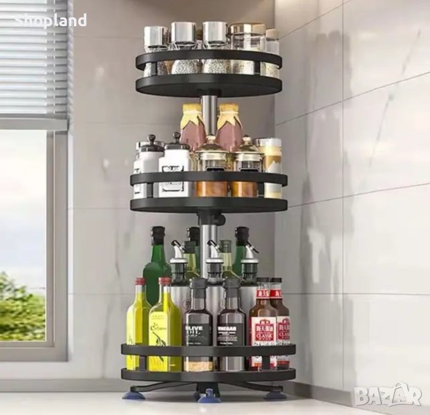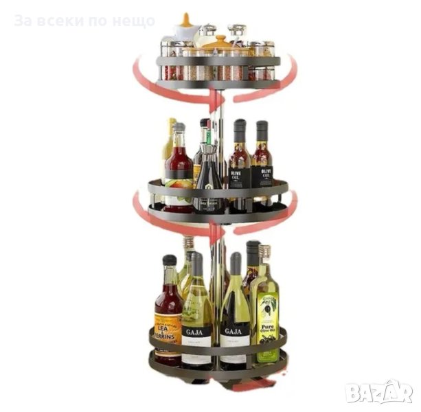Въртящият се стелаж за съхранение на три нива е перфектното решение за всички, които търсят практичен и удобен начин за съхраняване на своите продукти в кухнята, банята или всекидневната.