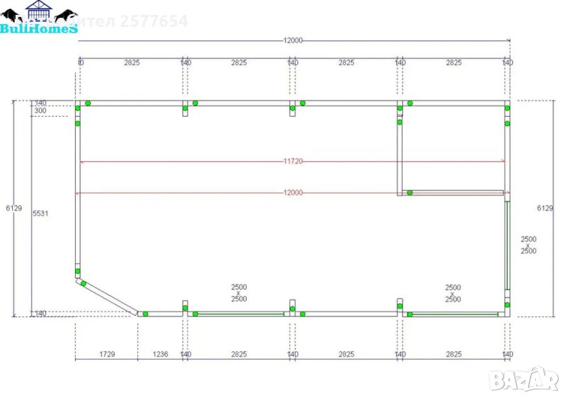 Магазин 72м2-12.00м х 6.00м х 3.00м - етап Конструкция - готови за сглобяване профили.