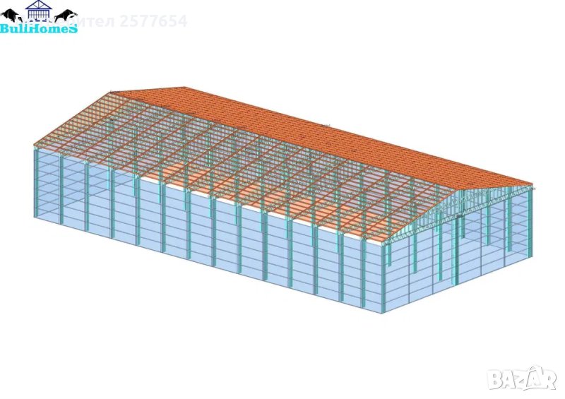 Конструкция за Хале, склад 1035м2-23.00м х 45.00м х 7.00м - етап Конструкция - готови за сглобяване профили.