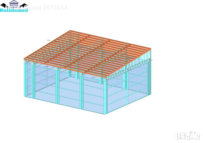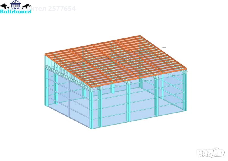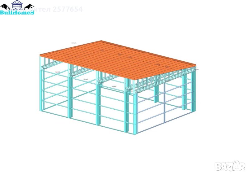 Конструкция за Хале, склад 80м2 - 8м х 10м х 3.5м - етап Конструкция - готови за сглобяване профили.